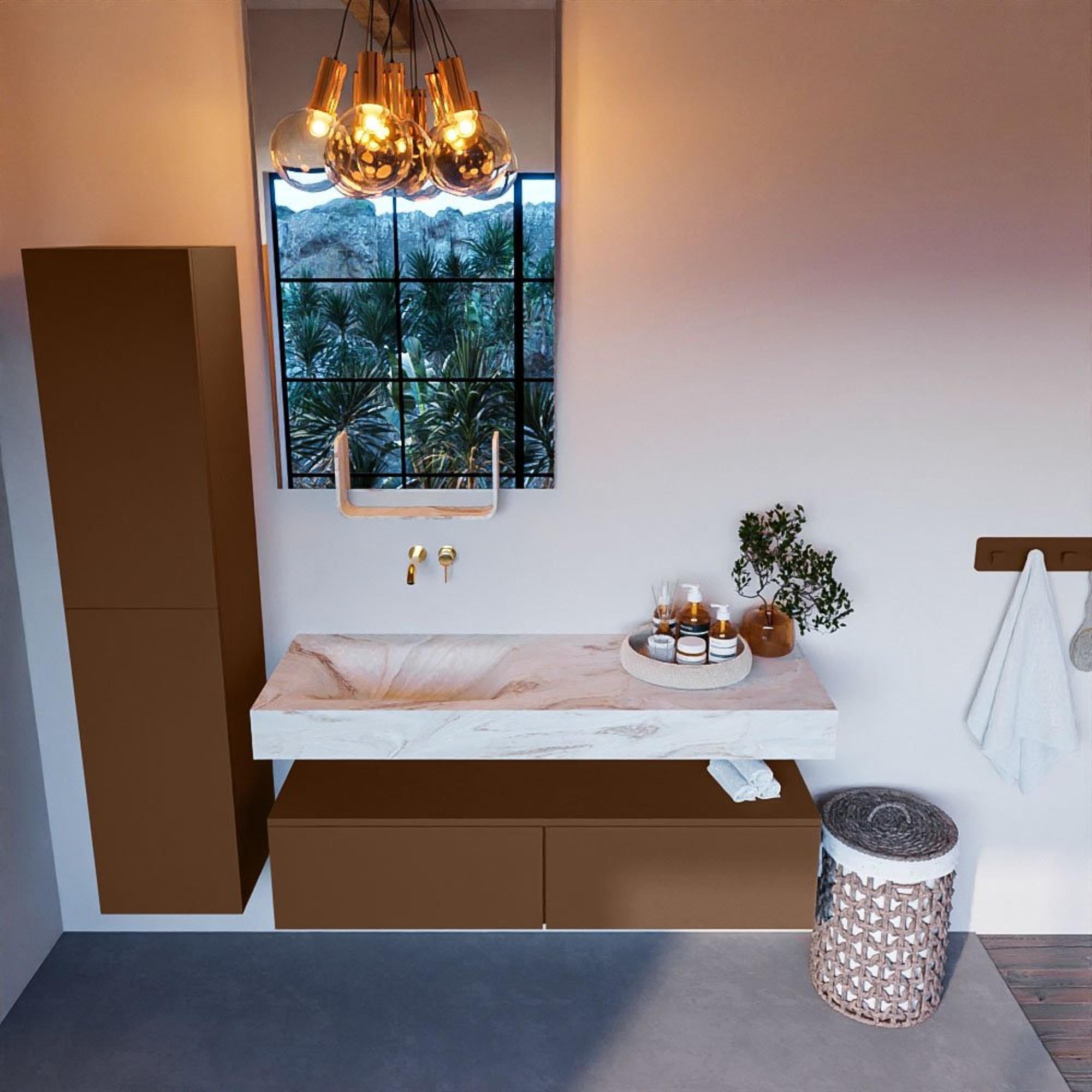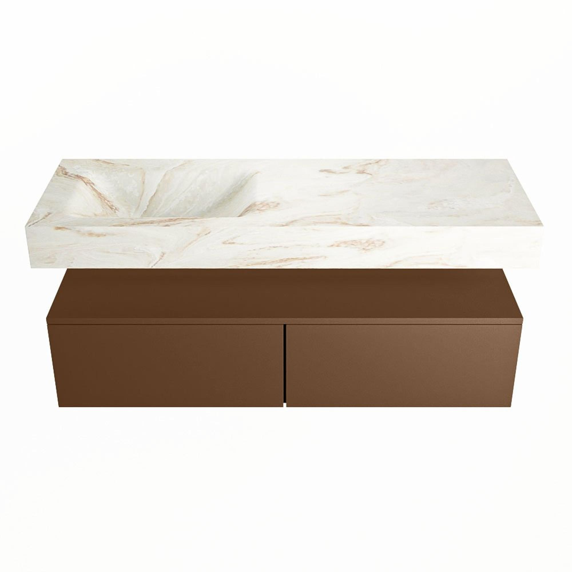 MONDIAZ ALAN - DLUX Badkamermeubelset - 130cm - onderkast - Rust - 2 lades - vrijhangende wastafel - wasbak links - 0 kraangaten - Frappe