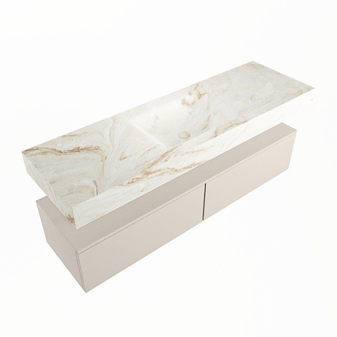 MONDIAZ ALAN - DLUX Badkamermeubelset - 150cm - onderkast - Linen - 2 lades - vrijhangende wastafel - wasbak midden - 0 kraangaten - Frappe