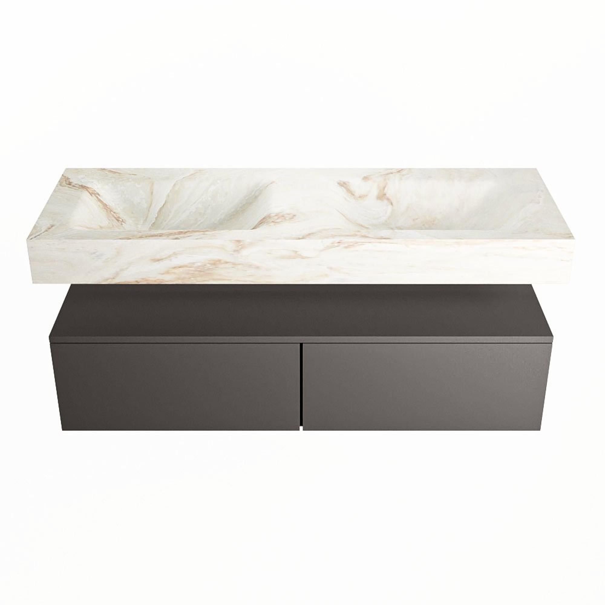 MONDIAZ ALAN - DLUX Badkamermeubelset - 130cm - onderkast - Dark grey - 2 lades - vrijhangende wastafel - 2 wasbakken - 0 kraangaten - Frappe