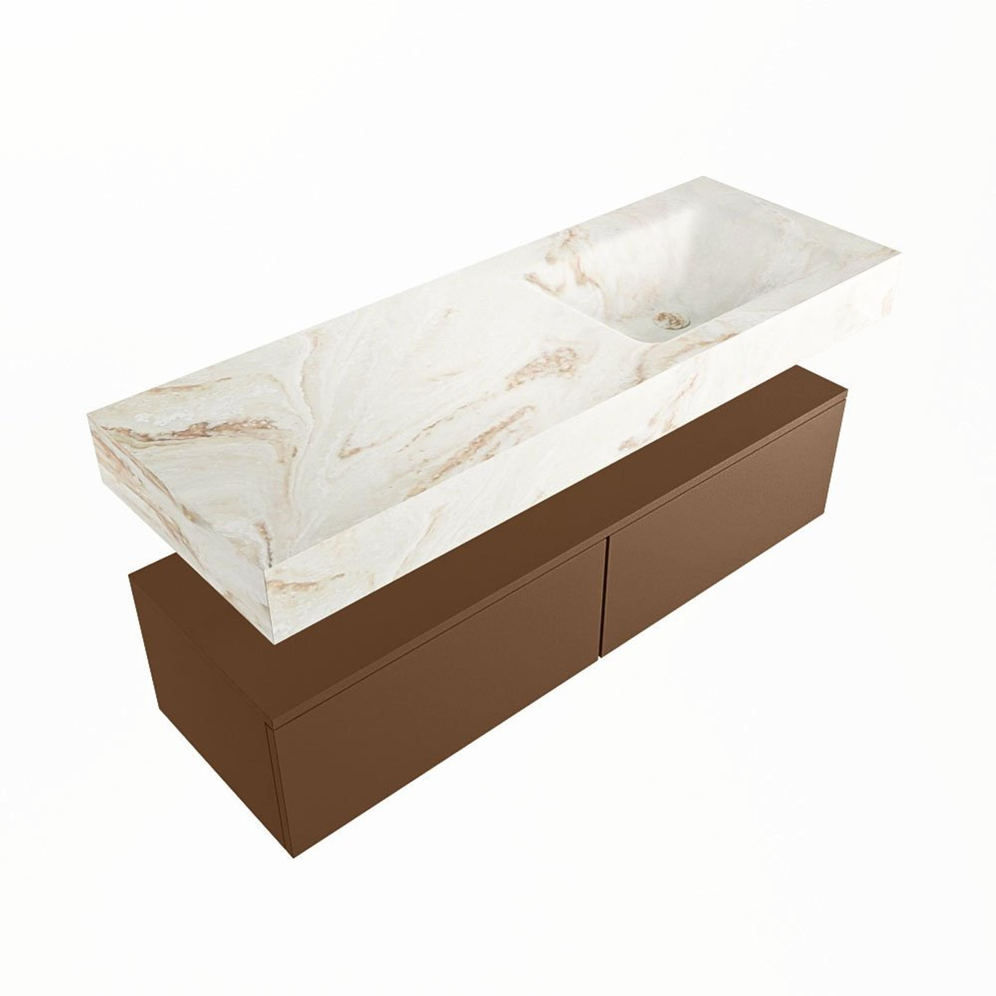 MONDIAZ ALAN - DLUX Badkamermeubelset - 130cm - onderkast - Rust - 2 lades - vrijhangende wastafel - wasbak rechts - 1 kraangat - Frappe