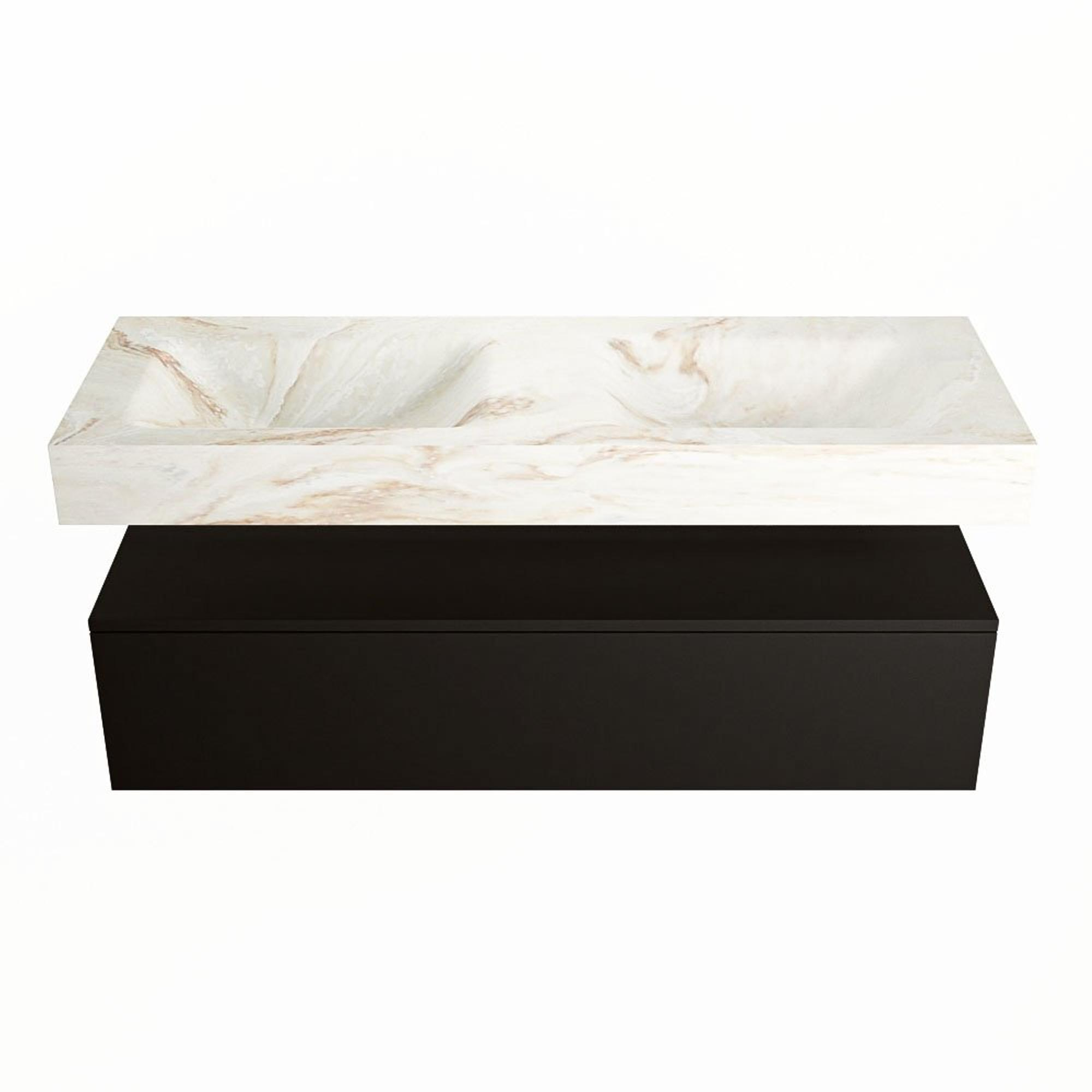 MONDIAZ ALAN - DLUX Badkamermeubelset - 130cm - onderkast - Urban - 1 lade - vrijhangende wastafel - 2 wasbakken - 2 kraangaten - Frappe
