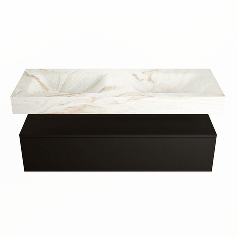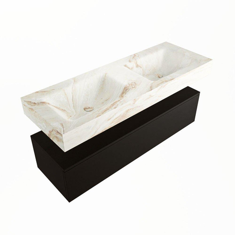 De MONDIAZ ALAN - DLUX Badkamermeubelset is een ware eyecatcher voor elke badkamer. Met een lengte van 130cm biedt dit meubel voldoende opbergruimte en stijlvolle functionaliteit. De Urban uitstraling gecombineerd met de Frappe afwerking geeft een moderne en elegante touch aan de badkamer. De vrijhangende wastafel met 2 wasbakken en 2 kraangaten zorgen voor ultiem gemak en comfort. De 1 lade biedt extra opbergruimte voor al je badkamerbenodigdheden. Laat je badkamer stralen met dit prachtige badkamermeubel!