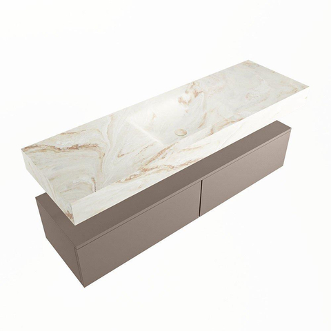 MONDIAZ ALAN - DLUX Badkamermeubelset - 150cm - onderkast - Smoke - 2 lades - vrijhangende wastafel - wasbak midden - 0 kraangaten - Frappe
