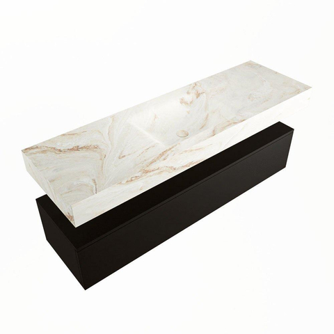 MONDIAZ ALAN - DLUX Badkamermeubelset - 150cm - onderkast - Urban - 1 lade - vrijhangende wastafel - wasbak midden - 0 kraangaten - Frappe