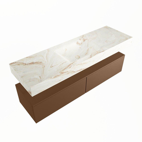 MONDIAZ ALAN - DLUX Badkamermeubelset - 150cm - onderkast - Rust - 2 lades - vrijhangende wastafel - wasbak midden - 1 kraangat - Frappe