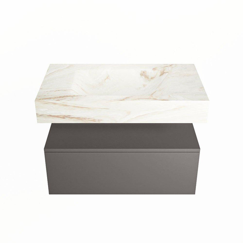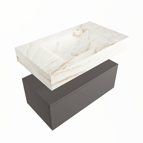 MONDIAZ ALAN - DLUX Badkamermeubelset - 80cm - onderkast - Dark grey - 1 lade - vrijhangende wastafel - wasbak midden - 1 kraangat - Frappe