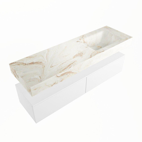 MONDIAZ ALAN - DLUX Badkamermeubelset - 150cm - onderkast - Talc - 2 lades - vrijhangende wastafel - wasbak rechts - 0 kraangaten - Frappe