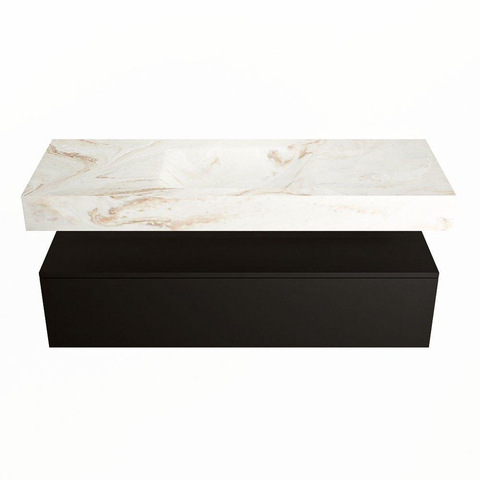 MONDIAZ ALAN - DLUX Badkamermeubelset - 130cm - onderkast - Urban - 1 lade - vrijhangende wastafel - wasbak midden - 0 kraangaten - Frappe