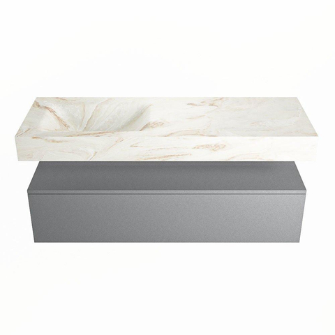 MONDIAZ ALAN - DLUX Badkamermeubelset - 130cm - onderkast - Plata - 1 lade - vrijhangende wastafel - wasbak links - 1 kraangat - Frappe