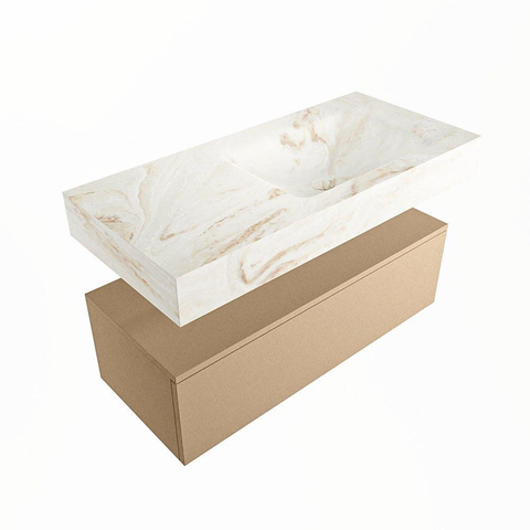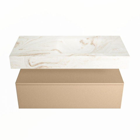 MONDIAZ ALAN - DLUX Badkamermeubelset - 100cm - onderkast - Oro - 1 lade - vrijhangende wastafel - wasbak rechts - 0 kraangaten - Frappe