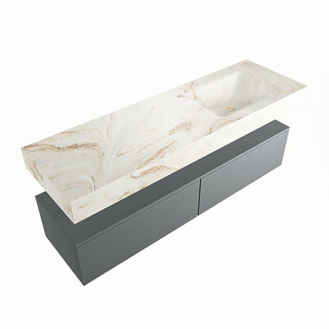 MONDIAZ ALAN - DLUX Badkamermeubelset - 150cm - onderkast - Plata - 2 lades - vrijhangende wastafel - wasbak rechts - 0 kraangaten - Frappe