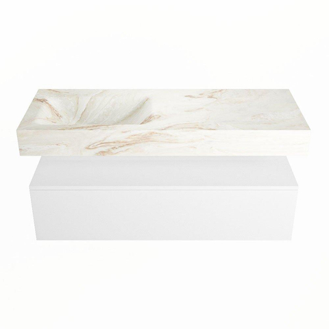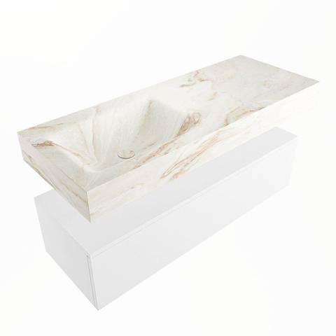 MONDIAZ ALAN - DLUX Badkamermeubelset - 120cm - onderkast - Talc - 1 lade - vrijhangende wastafel - wasbak links - 0 kraangaten - Frappe