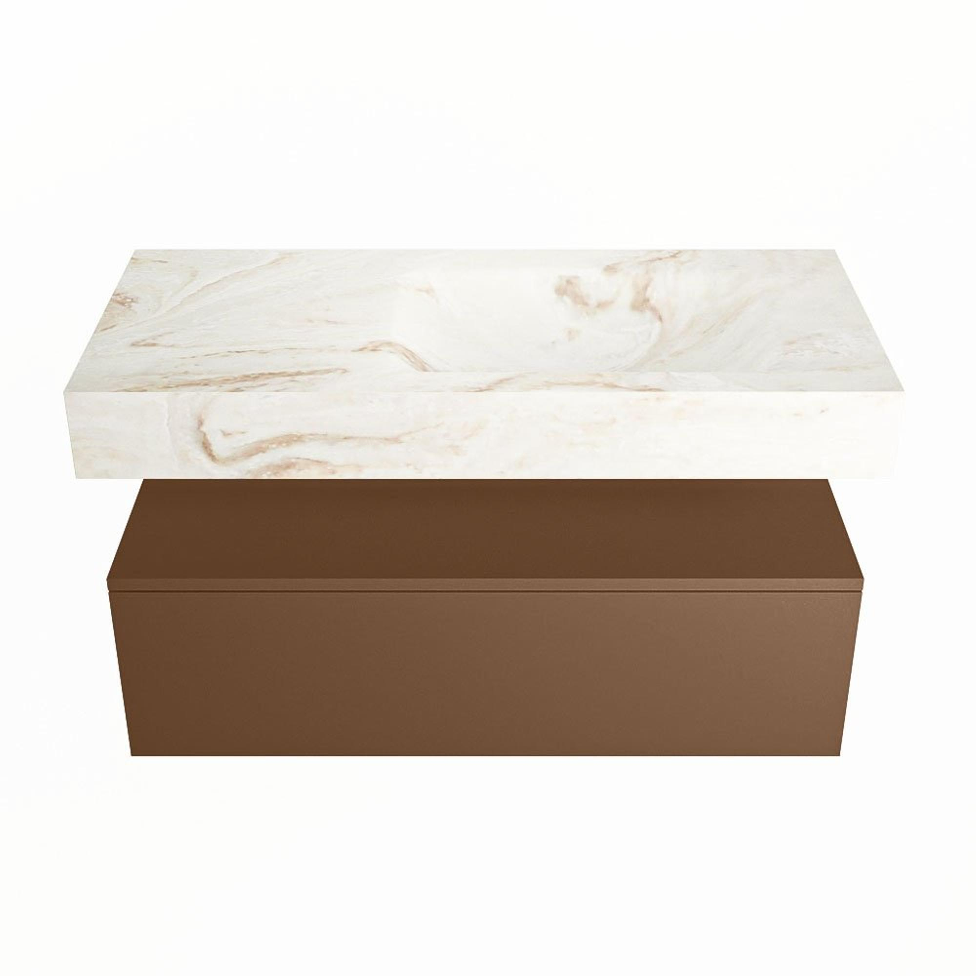 MONDIAZ ALAN - DLUX Badkamermeubelset - 100cm - onderkast - Rust - 1 lade - vrijhangende wastafel - wasbak rechts - 0 kraangaten - Frappe