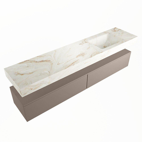 MONDIAZ ALAN - DLUX Badkamermeubelset - 200cm - onderkast - Smoke - 2 lades - vrijhangende wastafel - wasbak rechts - 0 kraangaten - Frappe