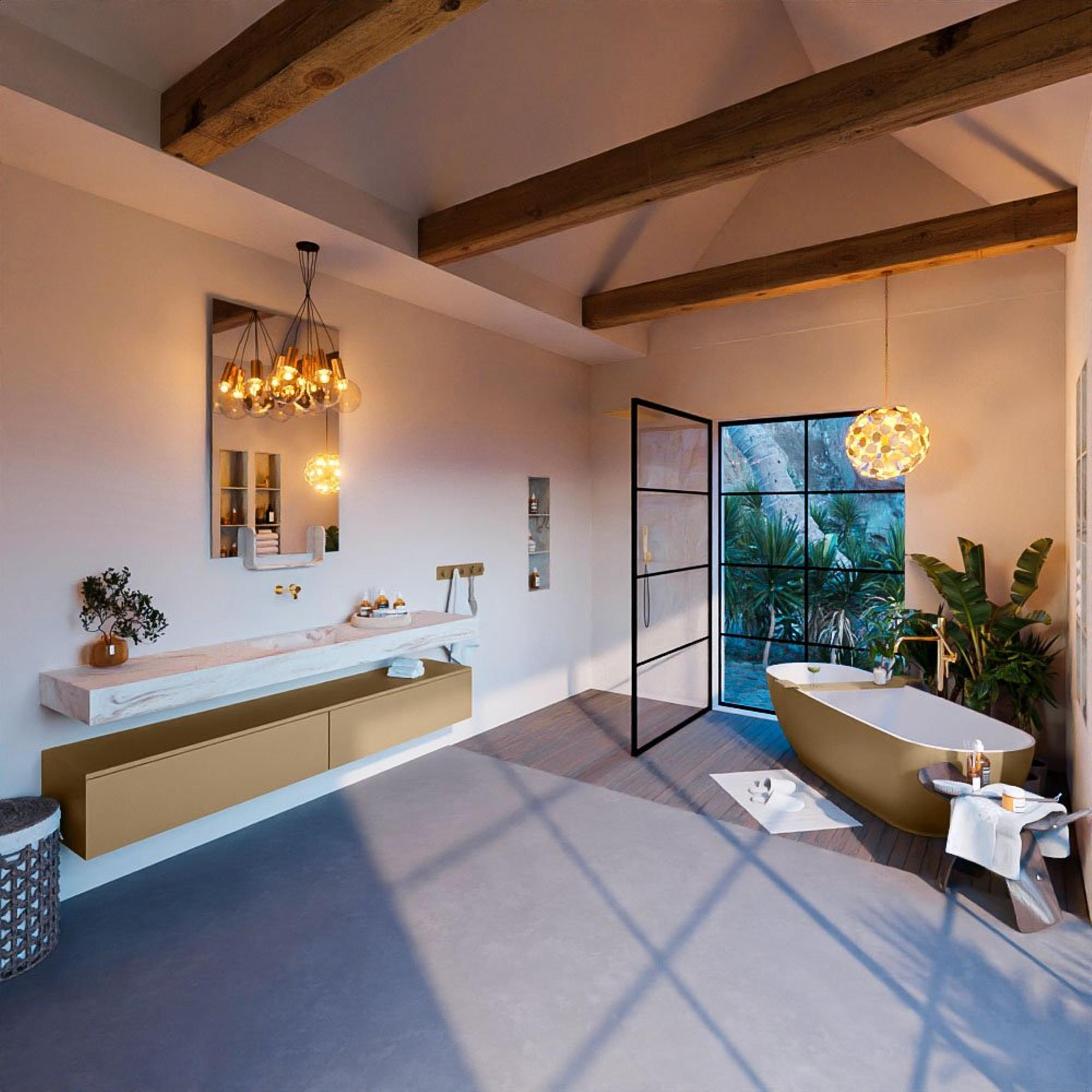 MONDIAZ ALAN - DLUX Badkamermeubelset - 200cm - onderkast - Oro - 2 lades - vrijhangende wastafel - wasbak midden - 0 kraangaten - Frappe