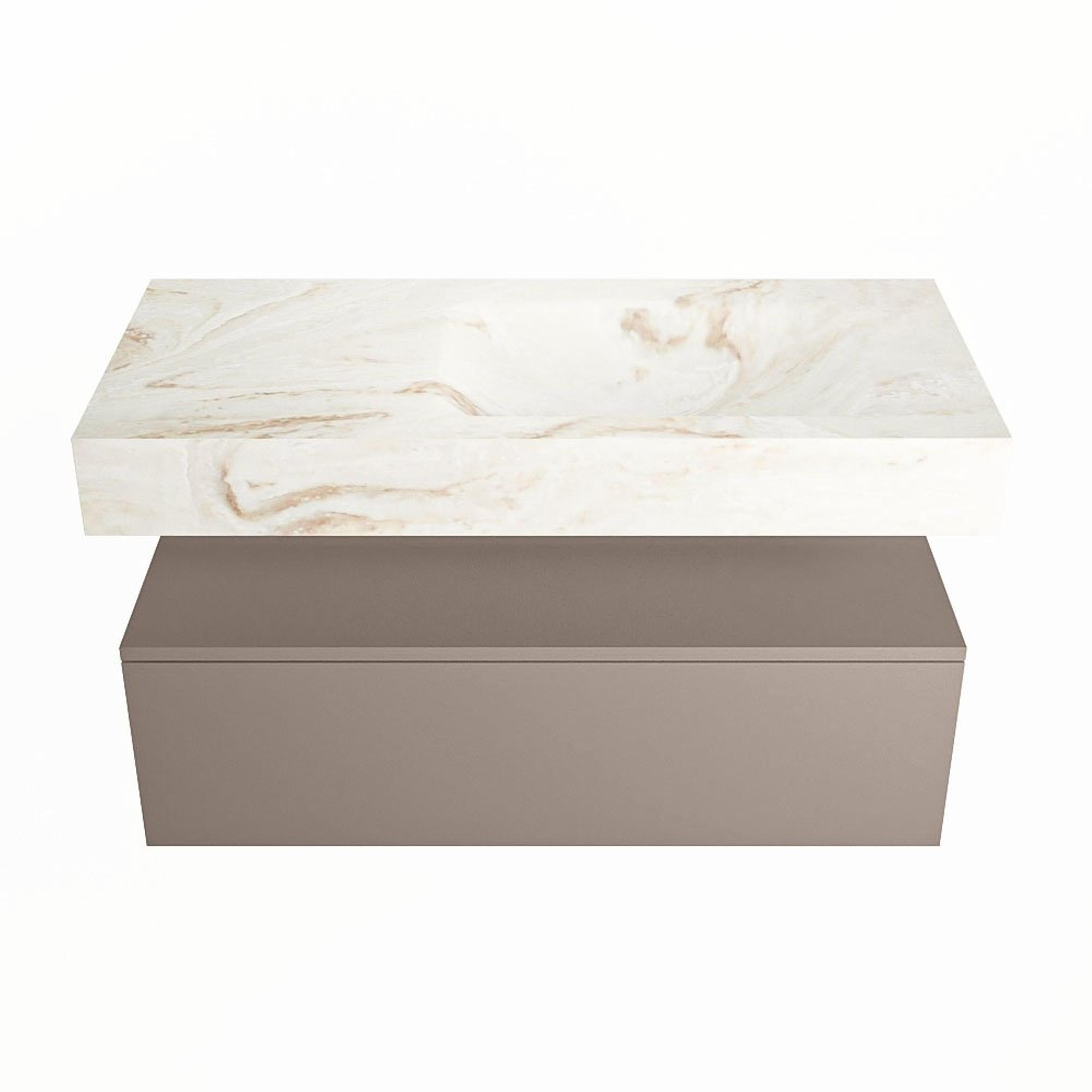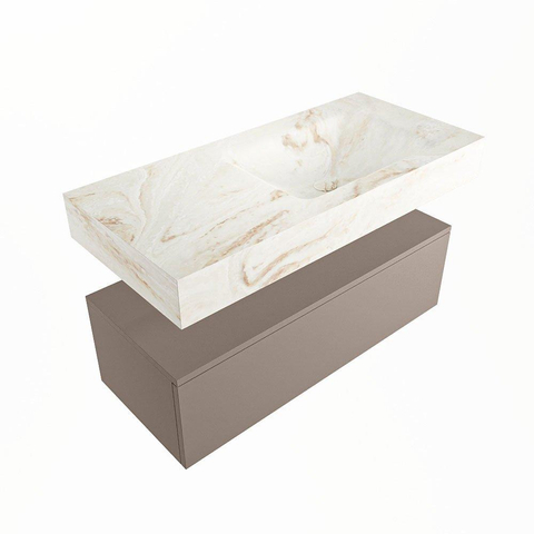 MONDIAZ ALAN - DLUX Badkamermeubelset - 100cm - onderkast - Smoke - 1 lade - vrijhangende wastafel - wasbak rechts - 1 kraangat - Frappe