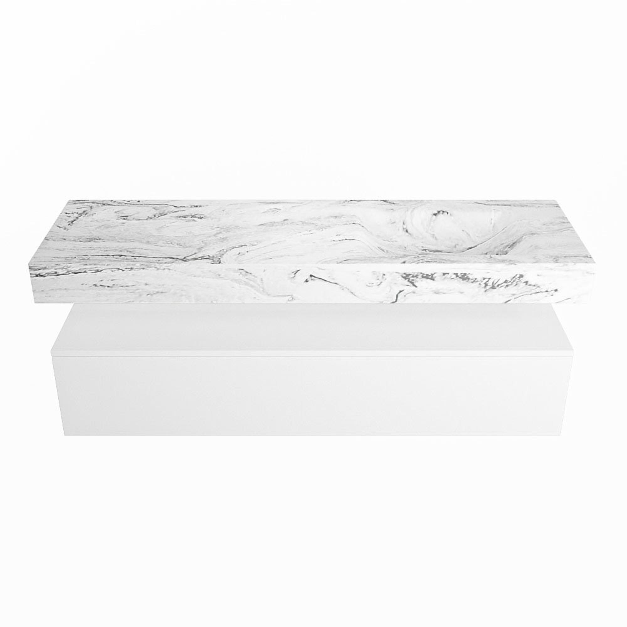 MONDIAZ ALAN - DLUX Badkamermeubelset - 150cm - onderkast - Talc - 1 lade - vrijhangende wastafel - wasbak rechts - 1 kraangat - Glace
