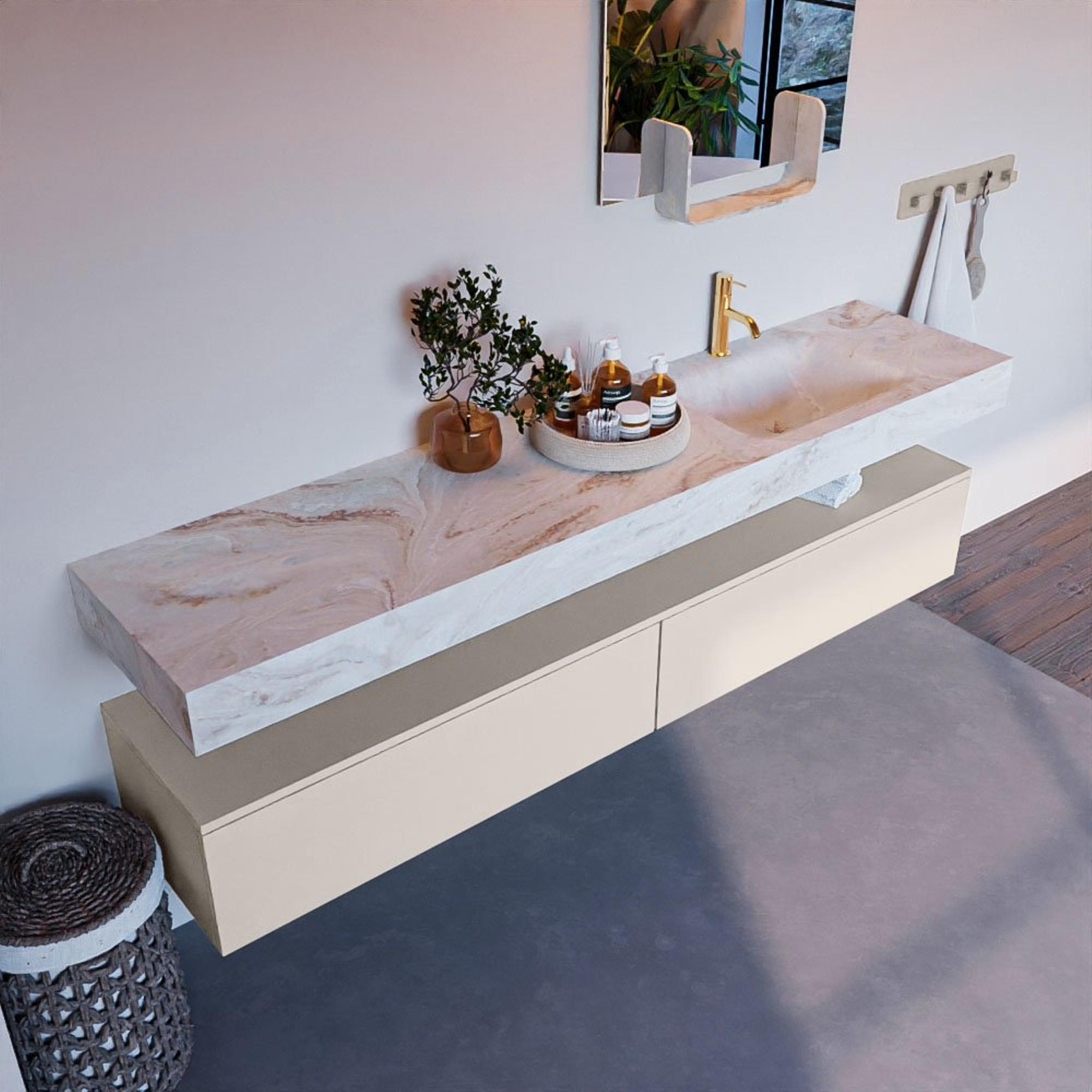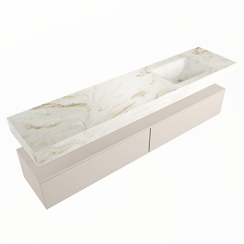 MONDIAZ ALAN - DLUX Badkamermeubelset - 200cm - onderkast - Linen - 2 lades - vrijhangende wastafel - wasbak rechts - 1 kraangat - Frappe
