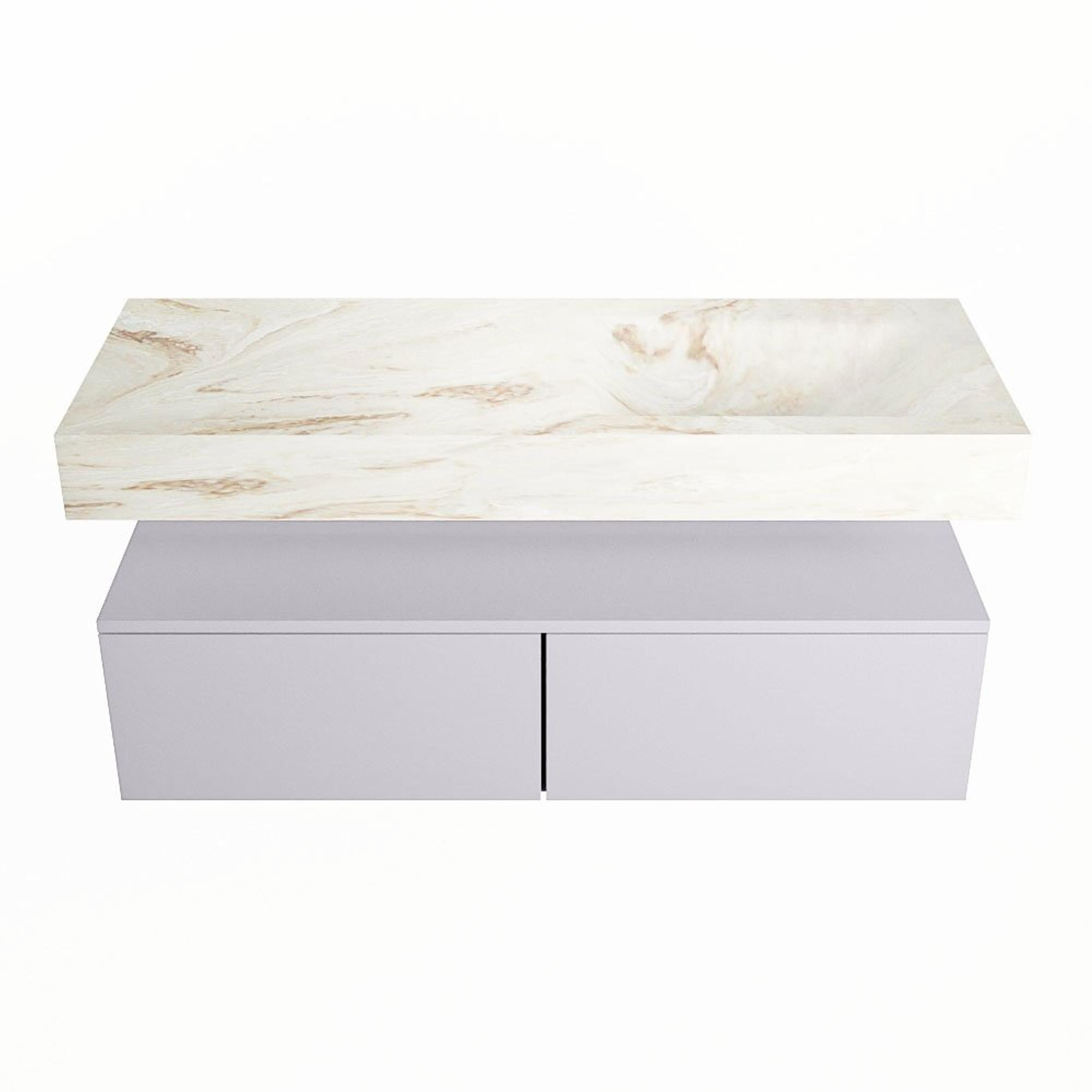 MONDIAZ ALAN - DLUX Badkamermeubelset - 120cm - onderkast - Cale - 2 lades - vrijhangende wastafel - wasbak rechts - 0 kraangaten - Frappe