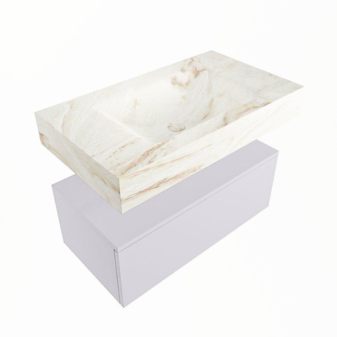 MONDIAZ ALAN - DLUX Badkamermeubelset - 80cm - onderkast - Cale - 1 lade - vrijhangende wastafel - wasbak midden - 0 kraangaten - Frappe