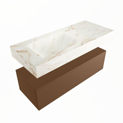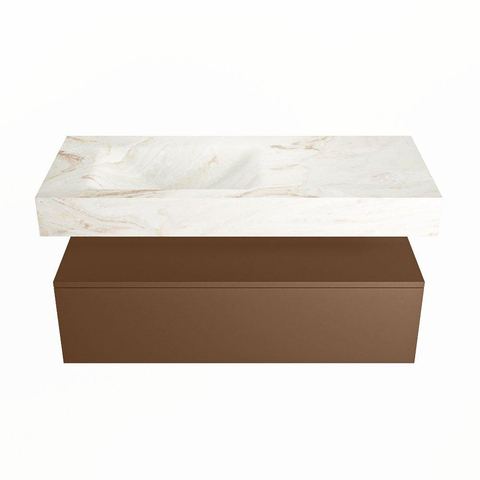 MONDIAZ ALAN - DLUX Badkamermeubelset - 110cm - onderkast - Rust - 1 lade - vrijhangende wastafel - wasbak links - 0 kraangaten - Frappe