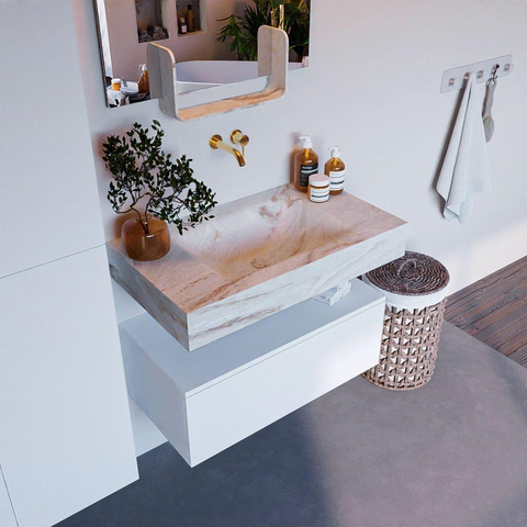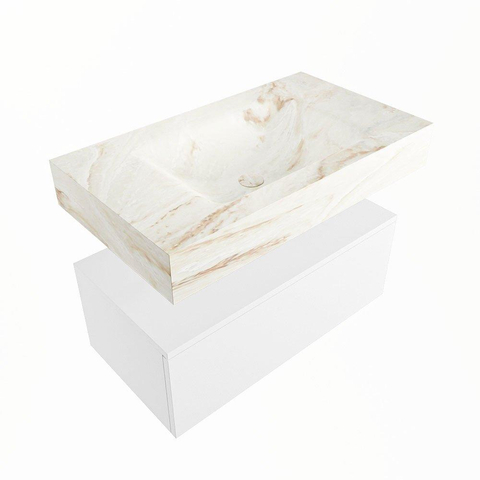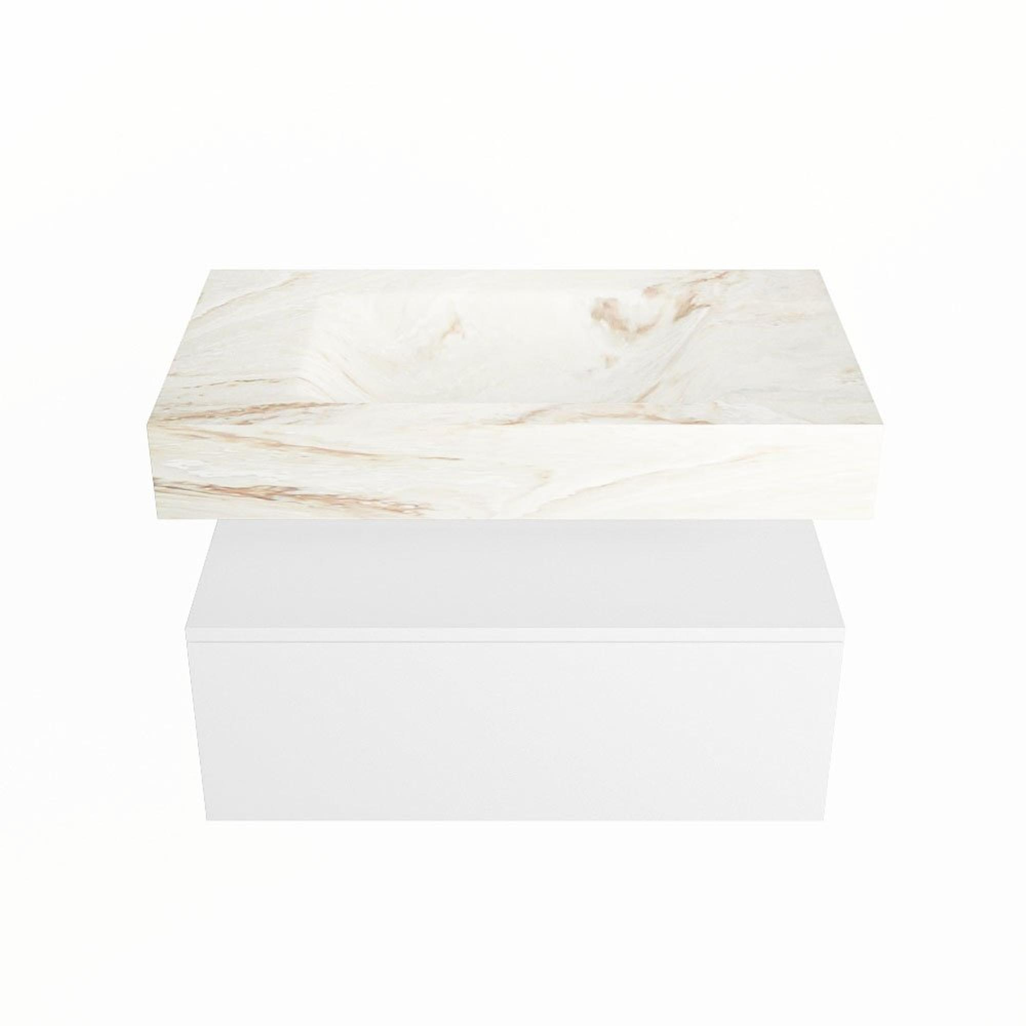 MONDIAZ ALAN - DLUX Badkamermeubelset - 80cm - onderkast - Talc - 1 lade - vrijhangende wastafel - wasbak midden - 0 kraangaten - Frappe