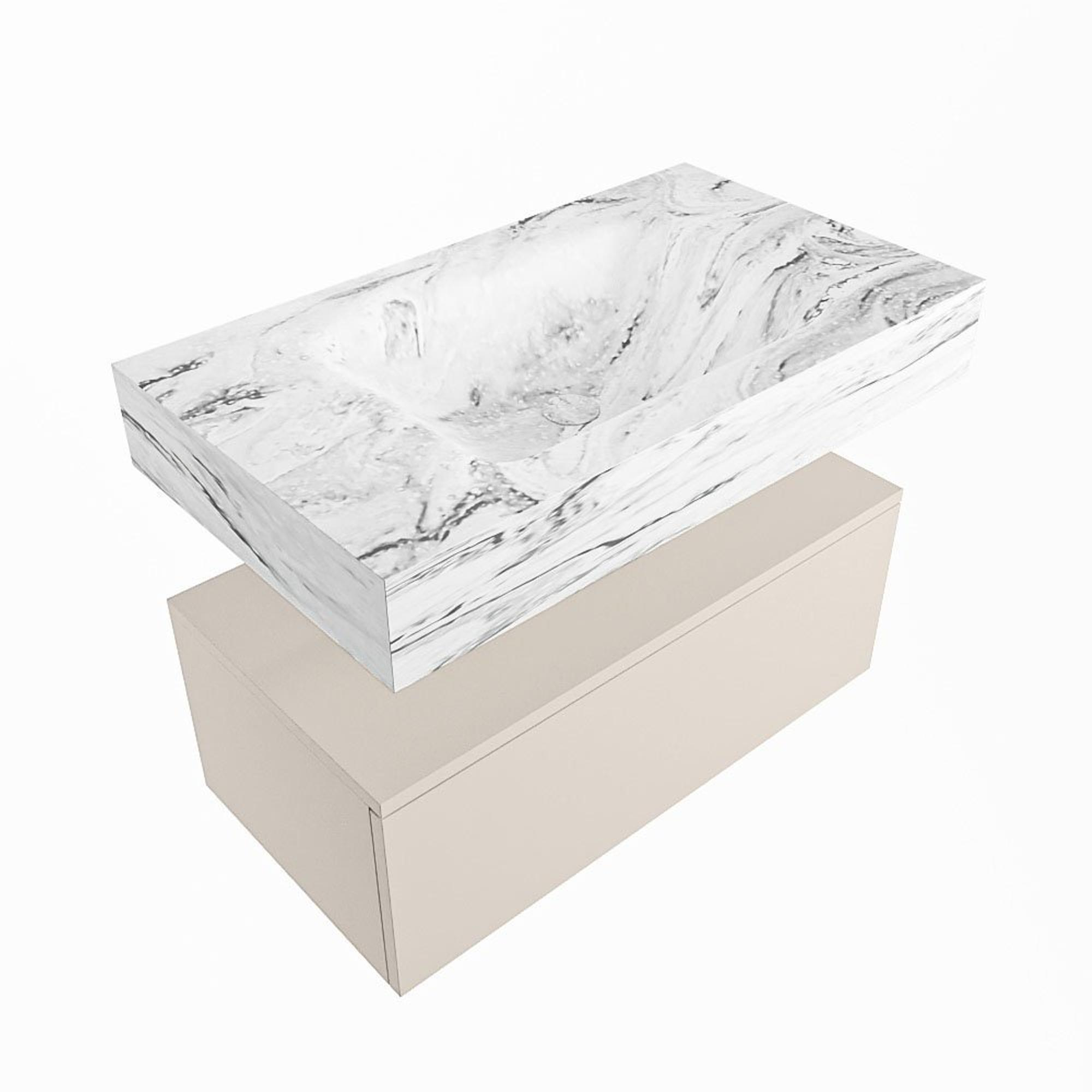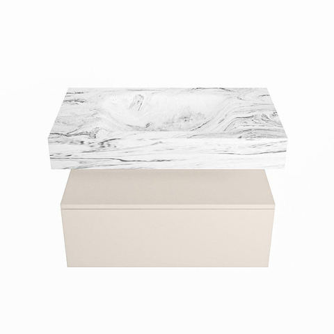 MONDIAZ ALAN - DLUX Badkamermeubelset - 80cm - onderkast - Linen - 1 lade - vrijhangende wastafel - wasbak midden - 0 kraangaten - Glace
