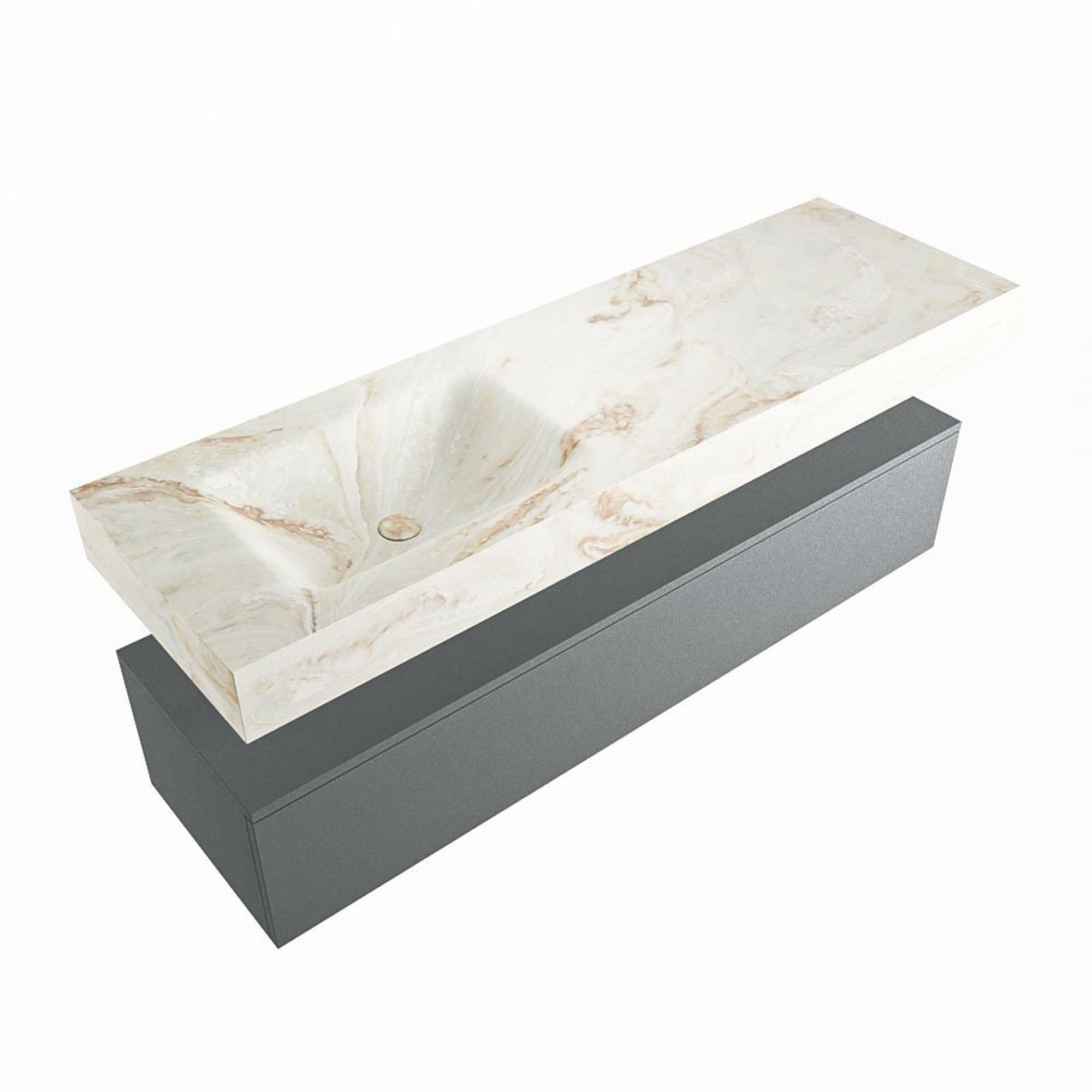MONDIAZ ALAN - DLUX Badkamermeubelset - 150cm - onderkast - Plata - 1 lade - vrijhangende wastafel - wasbak links - 0 kraangaten - Frappe
