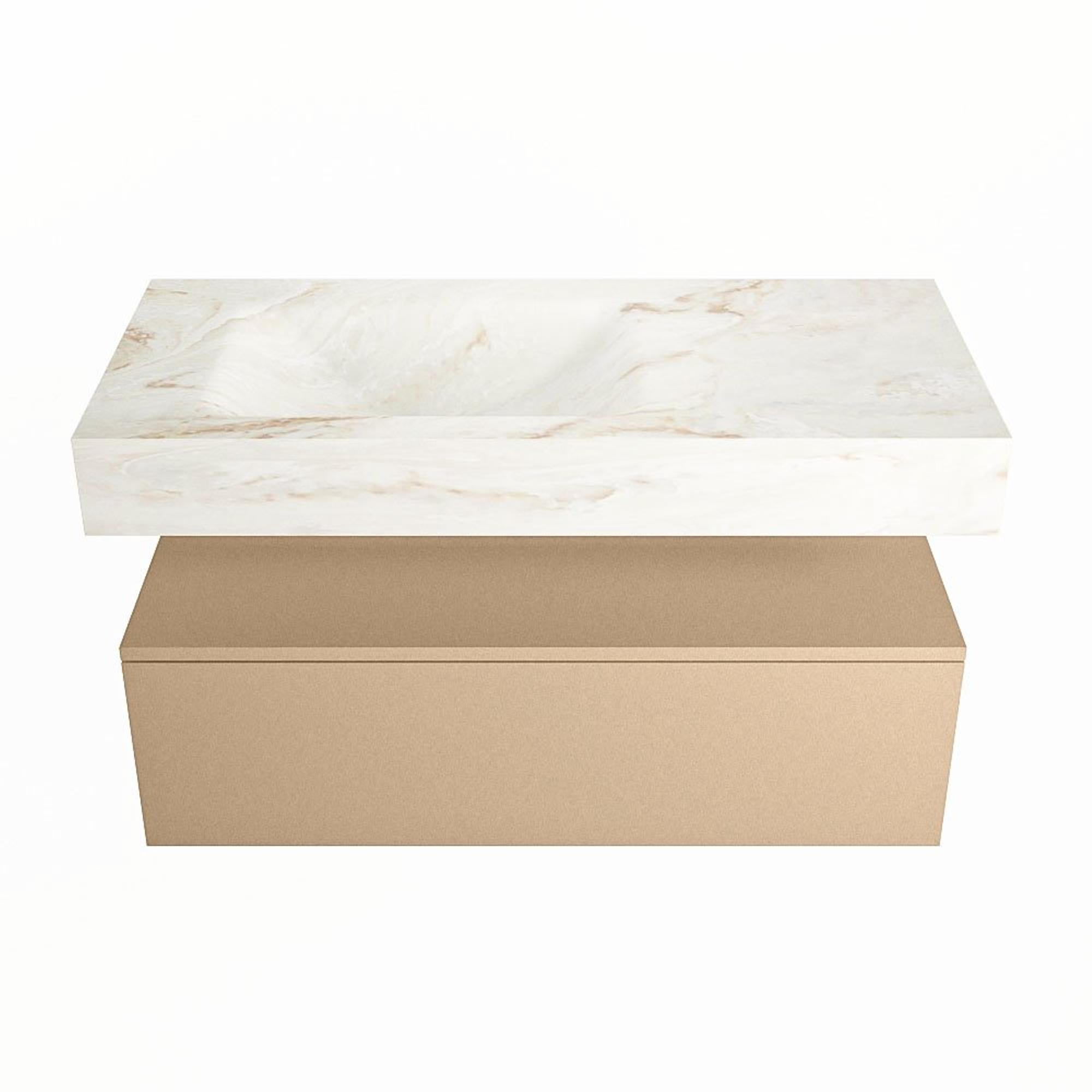MONDIAZ ALAN - DLUX Badkamermeubelset - 100cm - onderkast - Oro - 1 lade - vrijhangende wastafel - wasbak links - 1 kraangat - Frappe