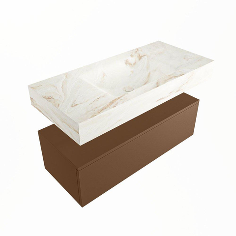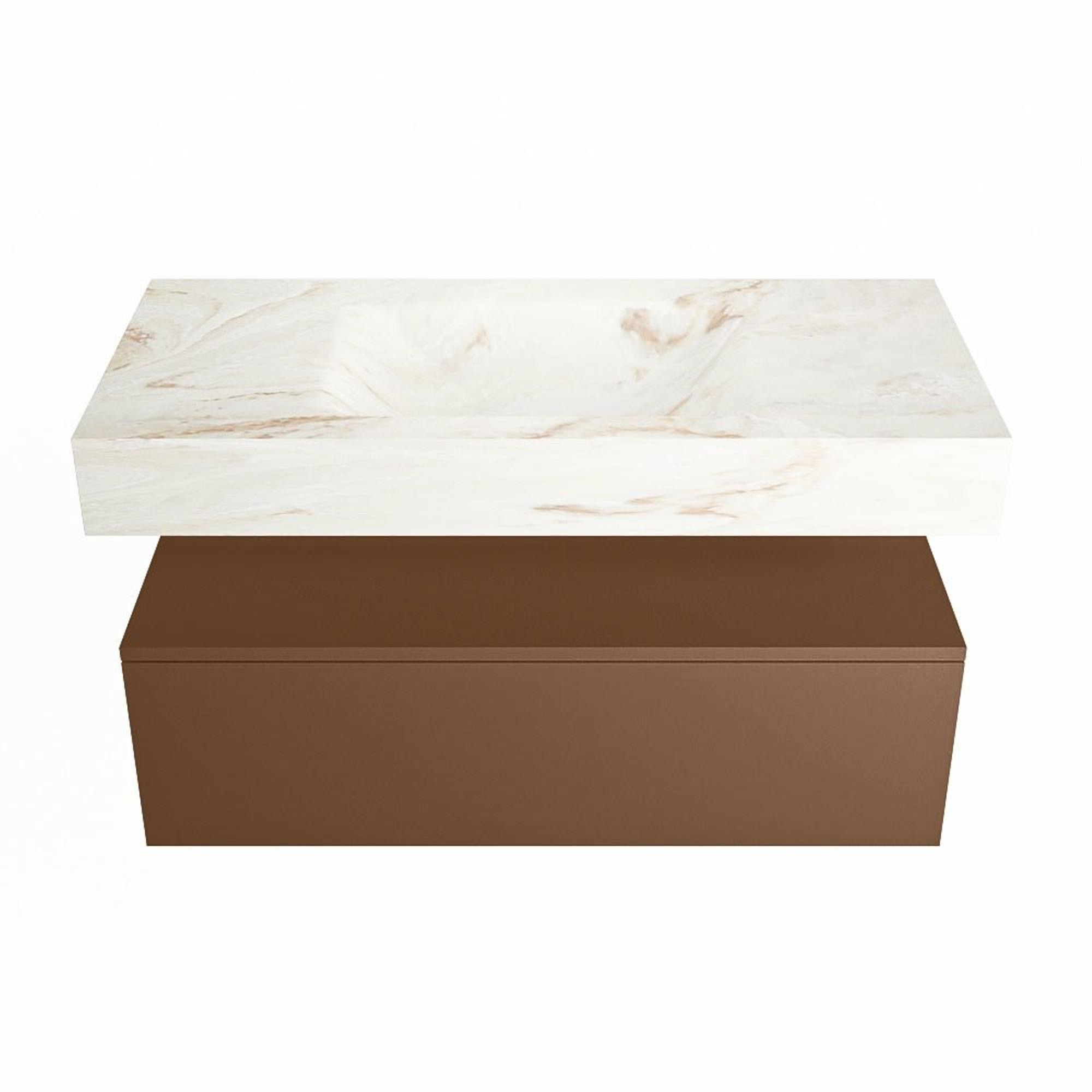 MONDIAZ ALAN - DLUX Badkamermeubelset - 100cm - onderkast - Rust - 1 lade - vrijhangende wastafel - wasbak midden - 1 kraangat - Frappe