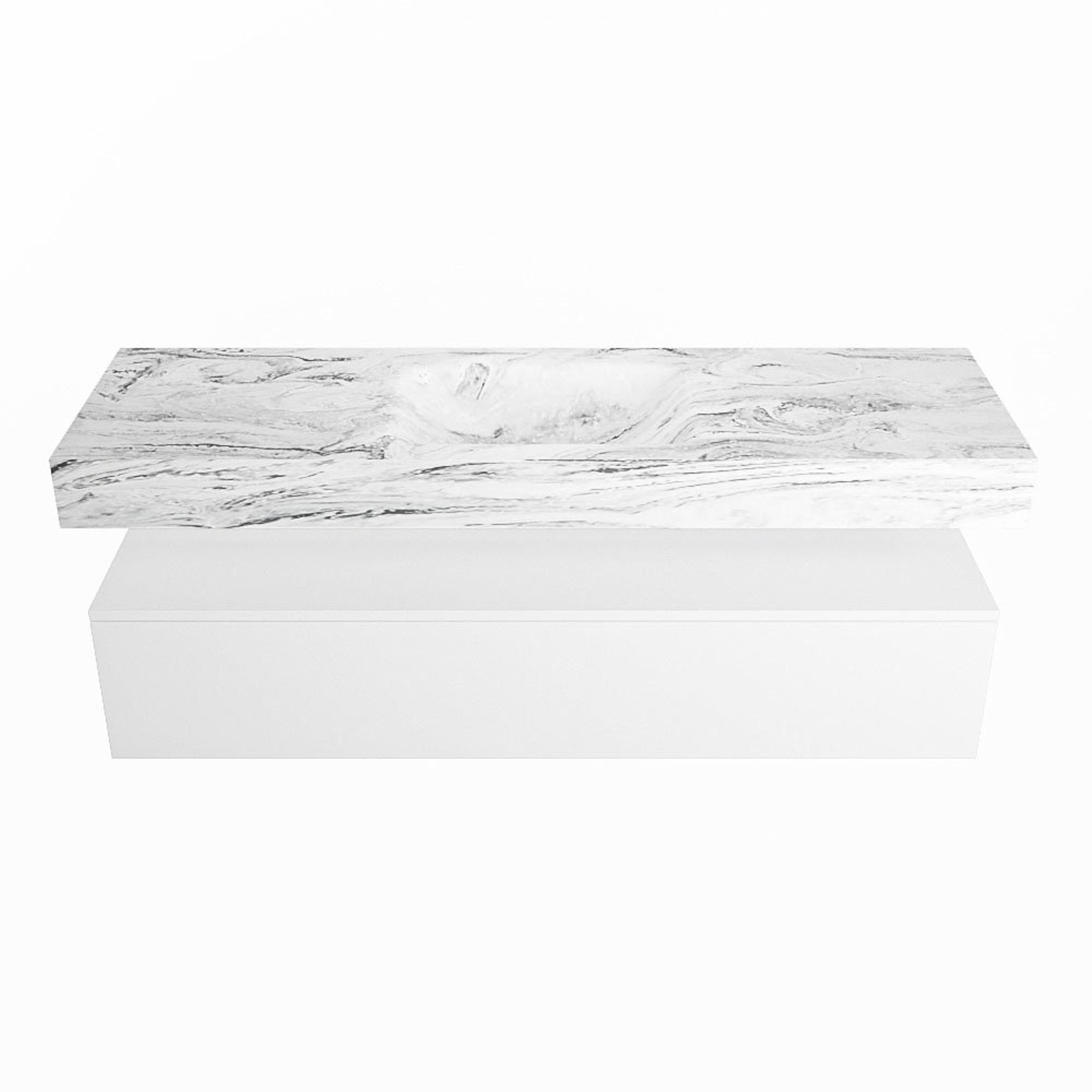 MONDIAZ ALAN - DLUX Badkamermeubelset - 150cm - onderkast - Talc - 1 lade - vrijhangende wastafel - wasbak midden - 1 kraangat - Glace