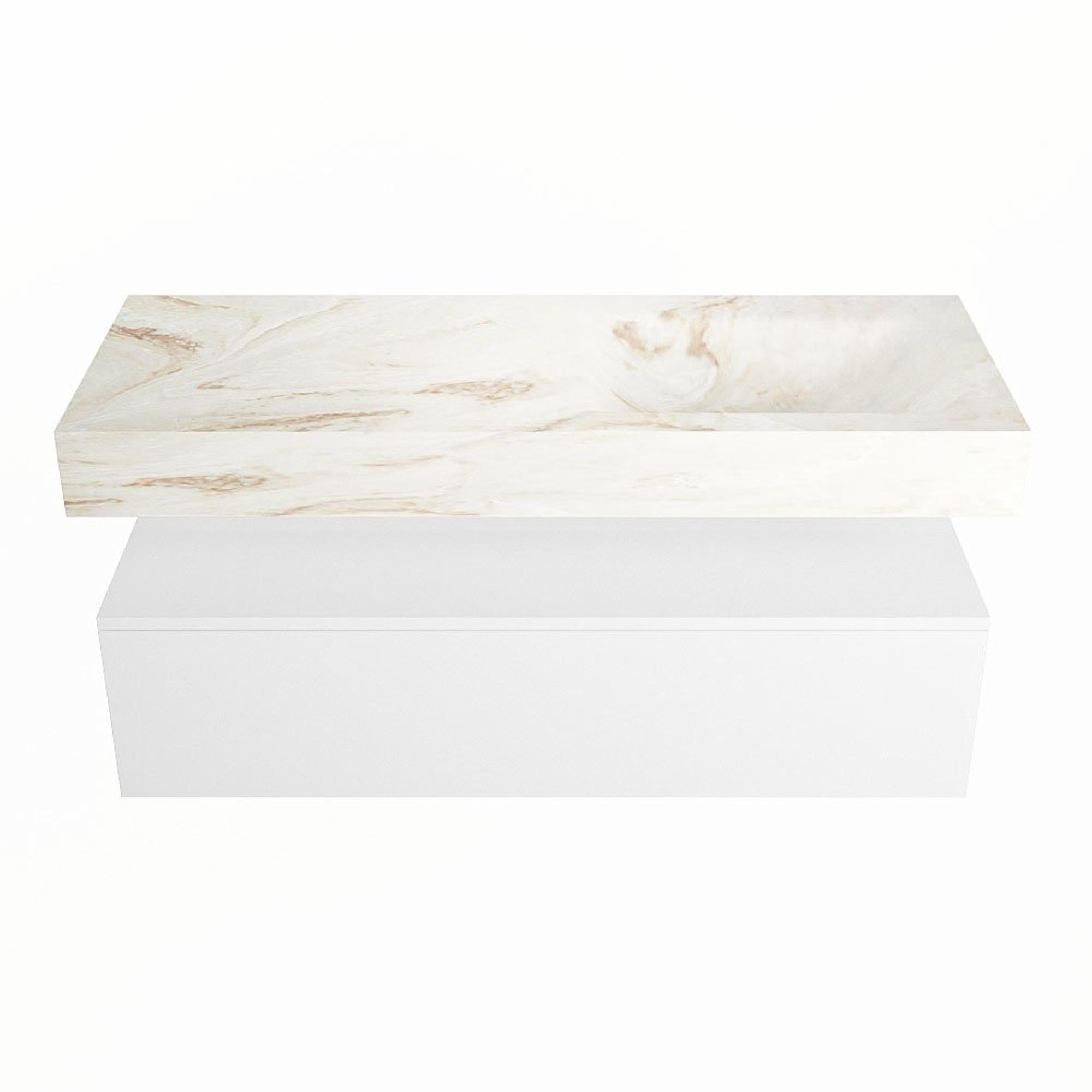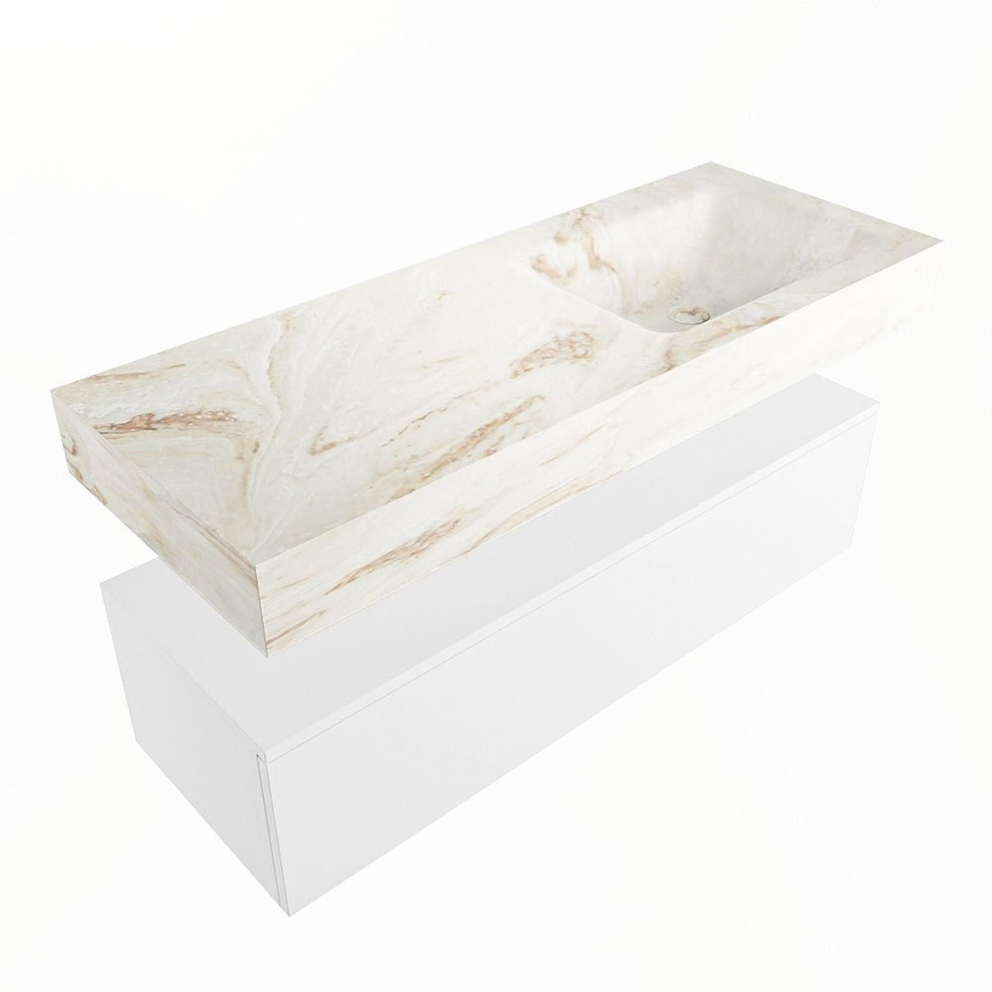MONDIAZ ALAN - DLUX Badkamermeubelset - 120cm - onderkast - Talc - 1 lade - vrijhangende wastafel - wasbak rechts - 1 kraangat - Frappe