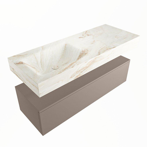 MONDIAZ ALAN - DLUX Badkamermeubelset - 120cm - onderkast - Smoke - 1 lade - vrijhangende wastafel - wasbak links - 0 kraangaten - Frappe