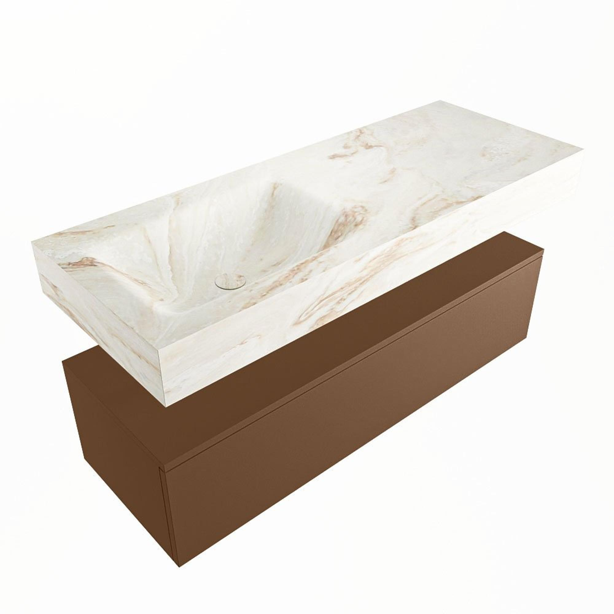 MONDIAZ ALAN - DLUX Badkamermeubelset - 120cm - onderkast - Rust - 1 lade - vrijhangende wastafel - wasbak links - 0 kraangaten - Frappe