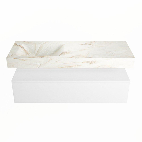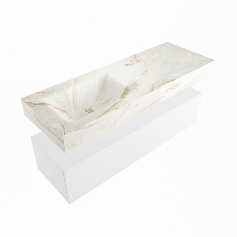 MONDIAZ ALAN - DLUX Badkamermeubelset - 130cm - onderkast - Talc - 1 lade - vrijhangende wastafel - wasbak links - 0 kraangaten - Frappe