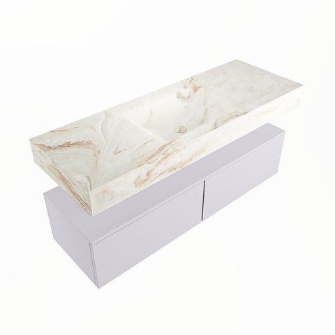 MONDIAZ ALAN - DLUX Badkamermeubelset - 130cm - onderkast - Cale - 2 lades - vrijhangende wastafel - wasbak midden - 0 kraangaten - Frappe