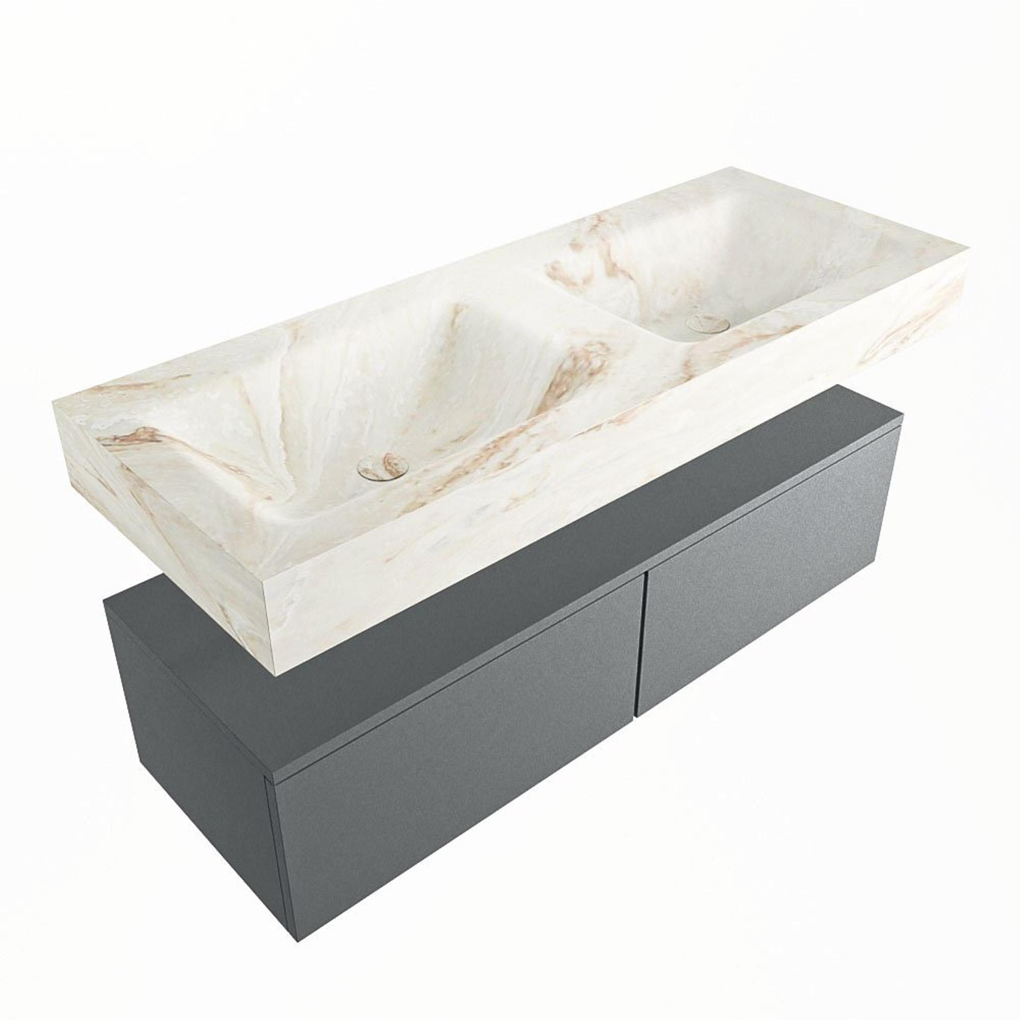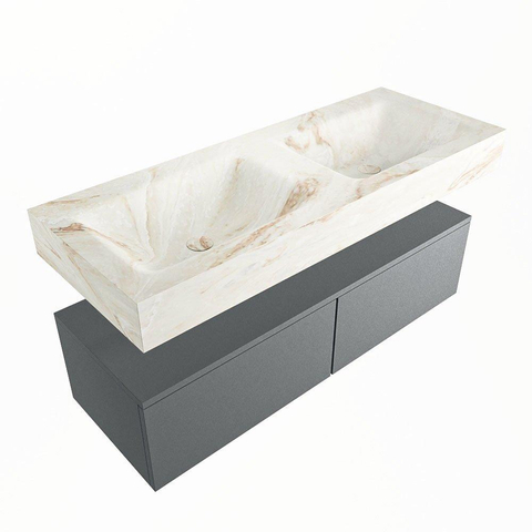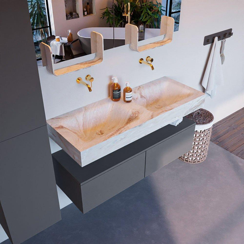 MONDIAZ ALAN - DLUX Badkamermeubelset - 120cm - onderkast - Plata - 2 lades - vrijhangende wastafel - 2 wasbakken - 0 kraangaten - Frappe