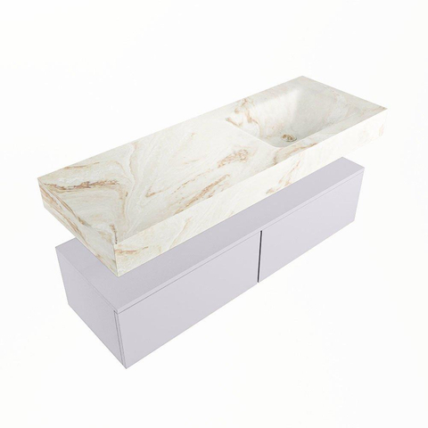 MONDIAZ ALAN - DLUX Badkamermeubelset - 130cm - onderkast - Cale - 2 lades - vrijhangende wastafel - wasbak rechts - 0 kraangaten - Frappe