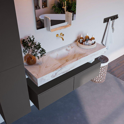 MONDIAZ ALAN - DLUX Badkamermeubelset - 130cm - onderkast - Dark grey - 2 lades - vrijhangende wastafel - wasbak midden - 0 kraangaten - Frappe