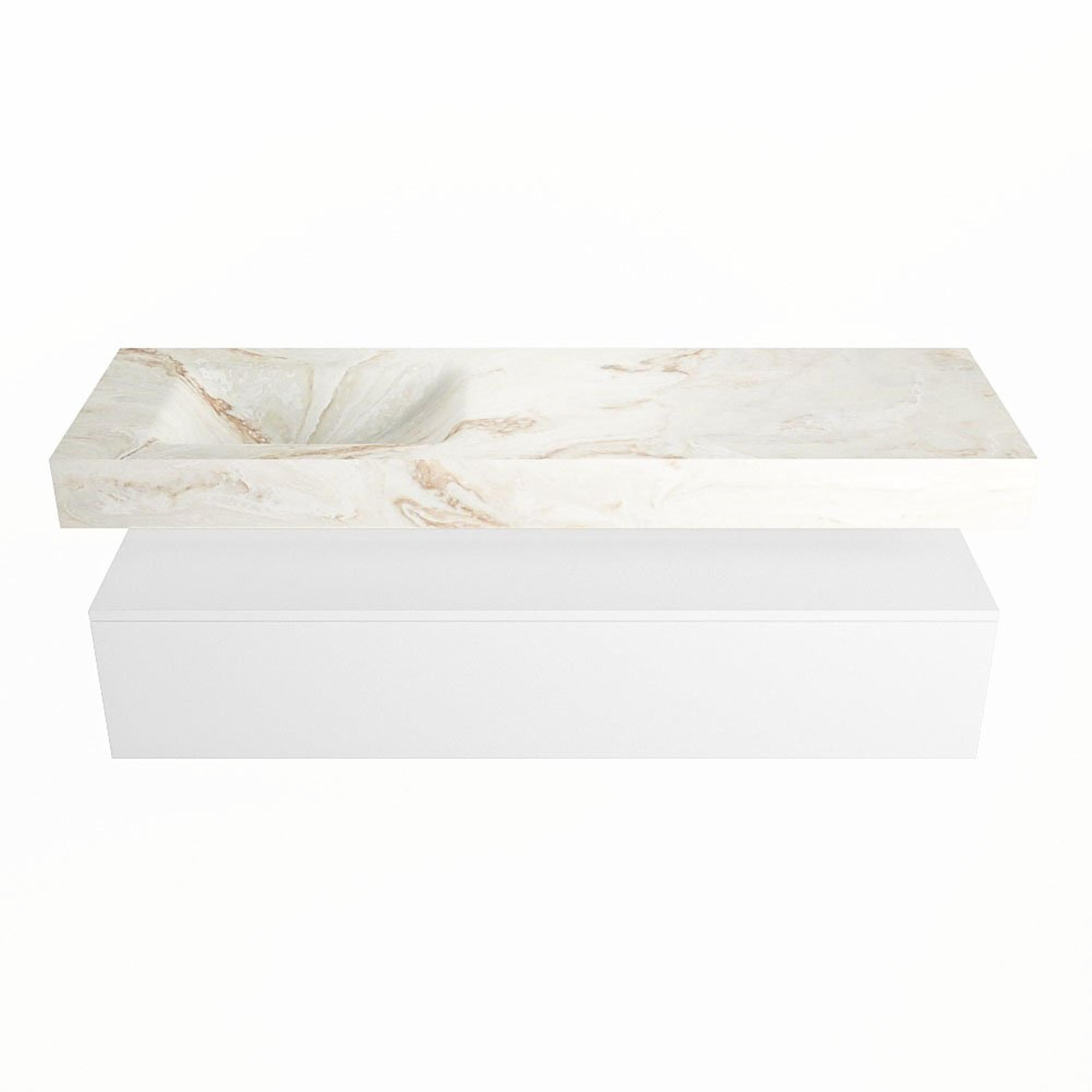 MONDIAZ ALAN - DLUX Badkamermeubelset - 150cm - onderkast - Talc - 1 lade - vrijhangende wastafel - wasbak links - 0 kraangaten - Frappe