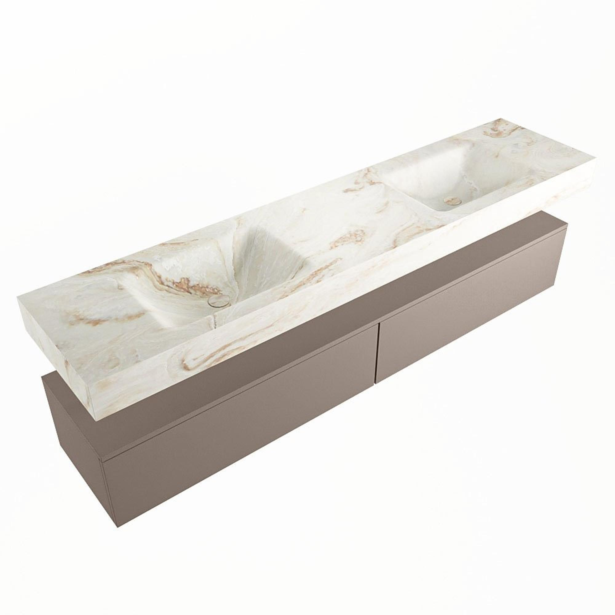 MONDIAZ ALAN - DLUX Badkamermeubelset - 200cm - onderkast - Smoke - 2 lades - vrijhangende wastafel - 2 wasbakken - 2 kraangaten - Frappe