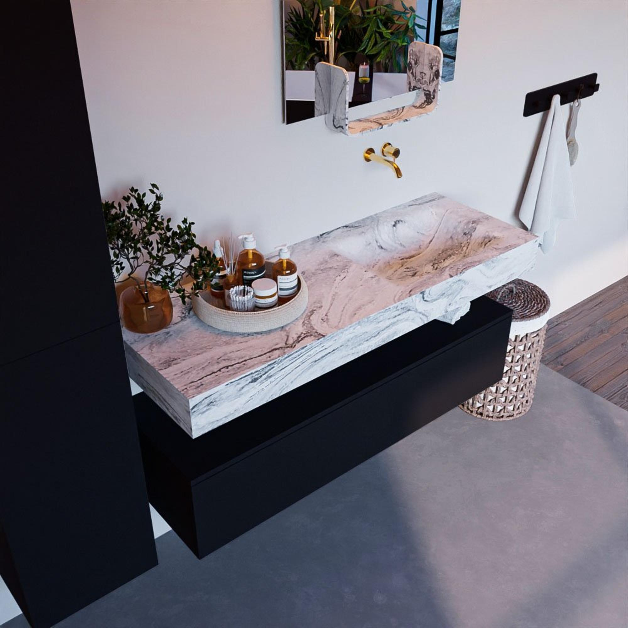 Creëer een fantastische elegante uitstraling in uw badkamer met de badkamermeubel set Alan DLUX. De schitterende badmeubel set ALAN-DLUX bestaat uit een vrij hangende wastafel met zachte organische lijnen van CORIAN in gemarmerd Solid Surface gecombineerd met de ALAN badmeubel. De badkamermeubel set ALAN-DLUX is geschikt voor iedere badkamer of deze nu klein of groot is. Om uw badkamer helemaal compleet te maken zijn ook diverse accessoires in deze marmers verkrijgbaar.