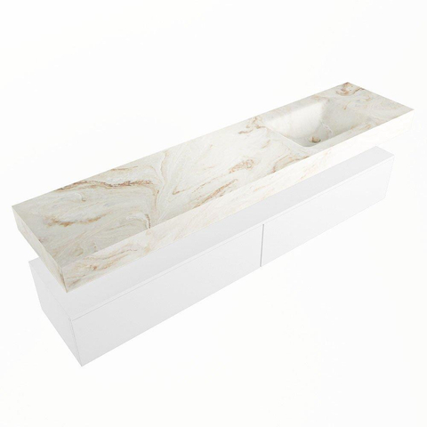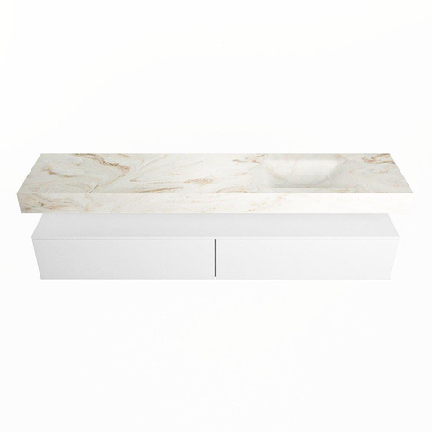 MONDIAZ ALAN - DLUX Badkamermeubelset - 200cm - onderkast - Talc - 2 lades - vrijhangende wastafel - wasbak rechts - 0 kraangaten - Frappe