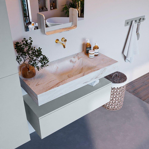 MONDIAZ ALAN - DLUX Badkamermeubelset - 100cm - onderkast - Clay - 1 lade - vrijhangende wastafel - wasbak midden - 0 kraangaten - Frappe