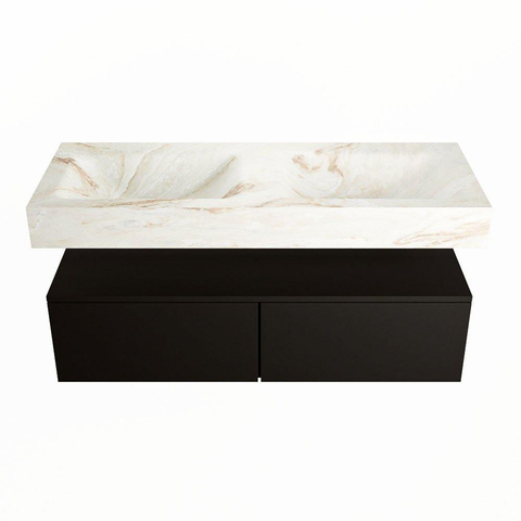 MONDIAZ ALAN - DLUX Badkamermeubelset - 120cm - onderkast - Urban - 2 lades - vrijhangende wastafel - 2 wasbakken - 2 kraangaten - Frappe