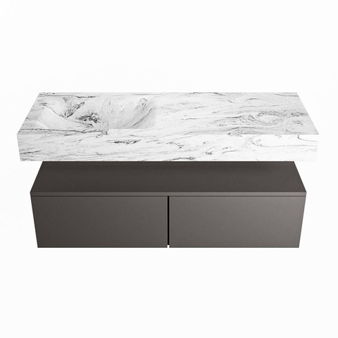 MONDIAZ ALAN - DLUX Badkamermeubelset - 120cm - onderkast - Dark grey - 2 lades - vrijhangende wastafel - wasbak links - 1 kraangat - Glace