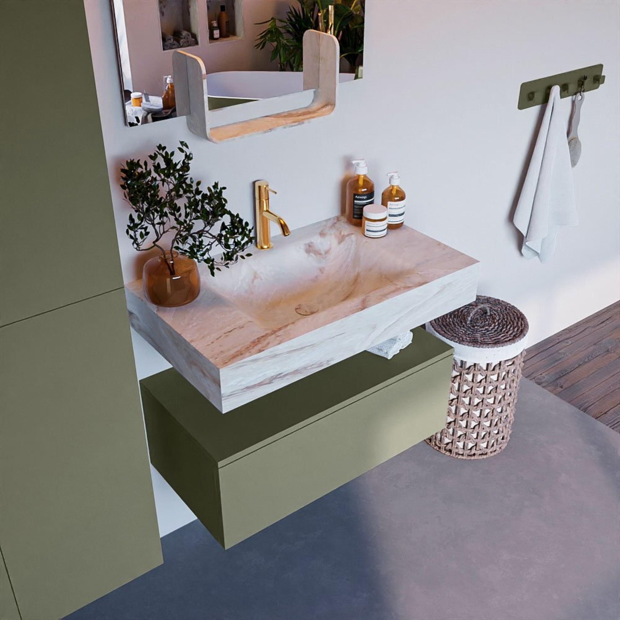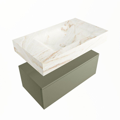 MONDIAZ ALAN - DLUX Badkamermeubelset - 80cm - onderkast - Army - 1 lade - vrijhangende wastafel - wasbak midden - 1 kraangat - Frappe