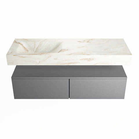 MONDIAZ ALAN - DLUX Badkamermeubelset - 130cm - onderkast - Plata - 2 lades - vrijhangende wastafel - wasbak links - 0 kraangaten - Frappe