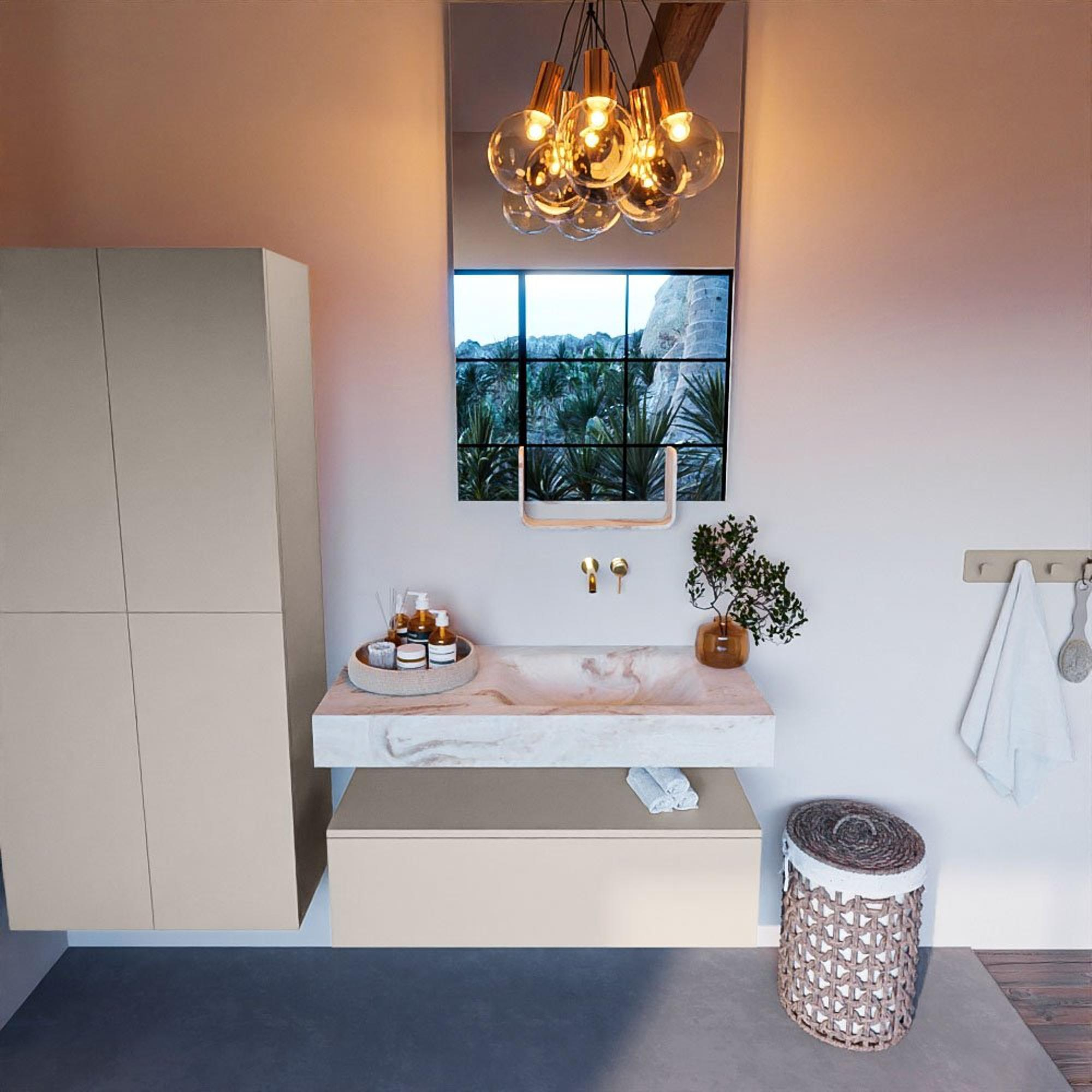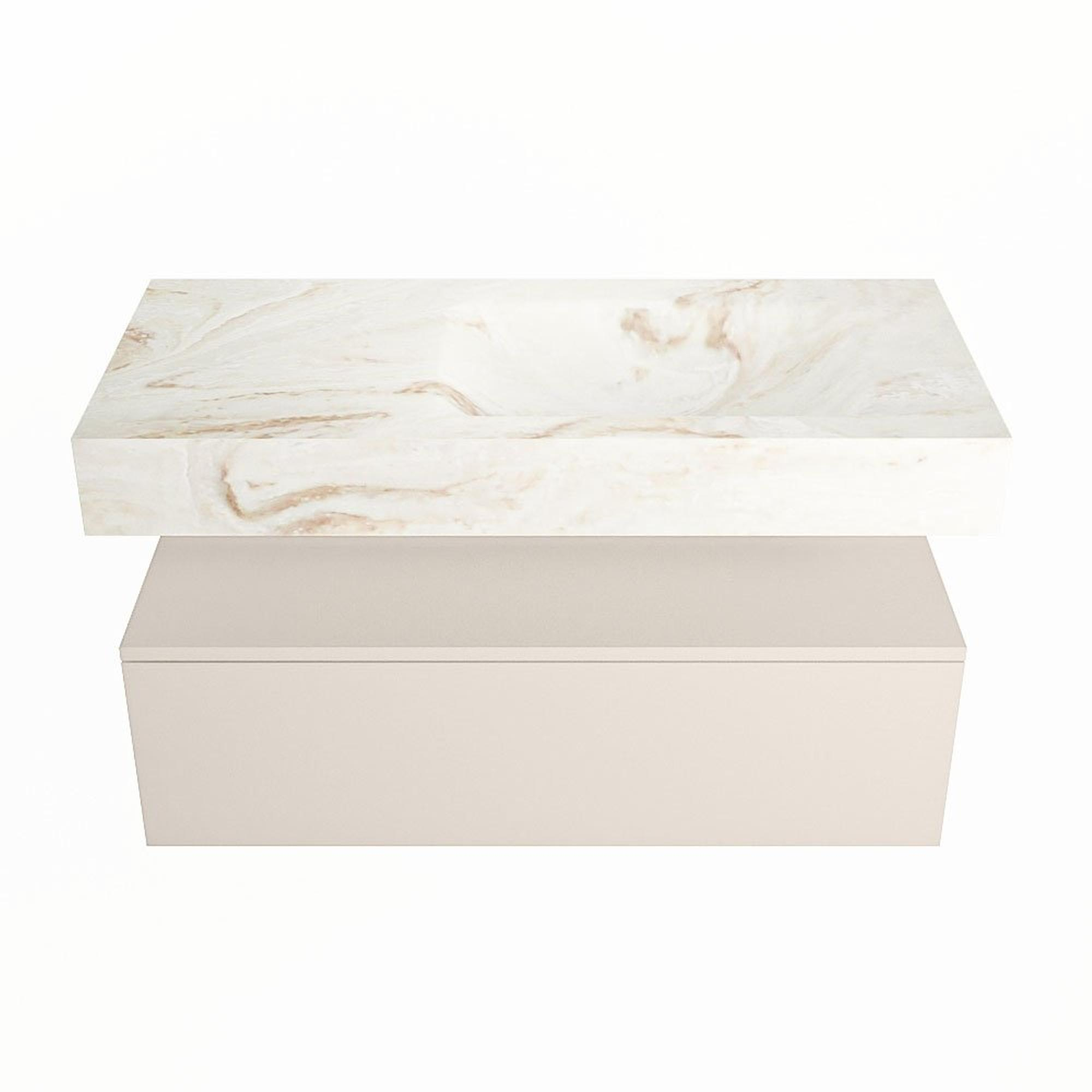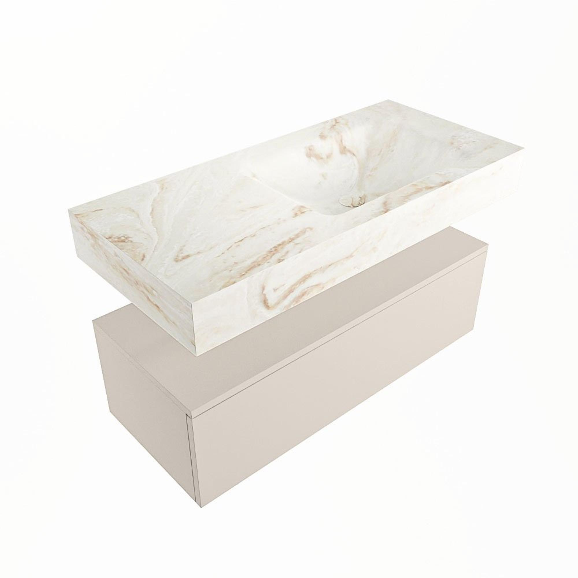 MONDIAZ ALAN - DLUX Badkamermeubelset - 100cm - onderkast - Linen - 1 lade - vrijhangende wastafel - wasbak rechts - 0 kraangaten - Frappe