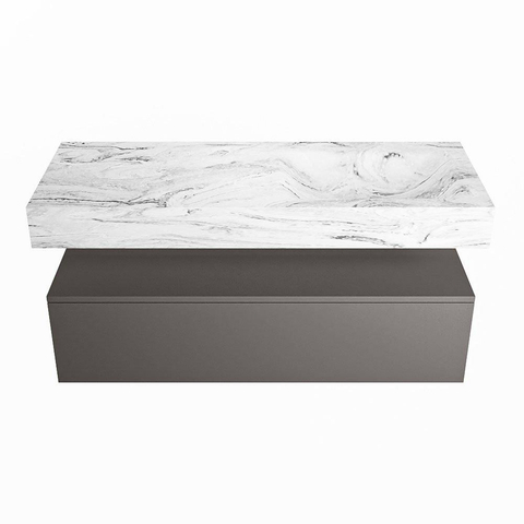 MONDIAZ ALAN - DLUX Badkamermeubelset - 120cm - onderkast - Dark grey - 1 lade - vrijhangende wastafel - wasbak rechts - 0 kraangaten - Glace